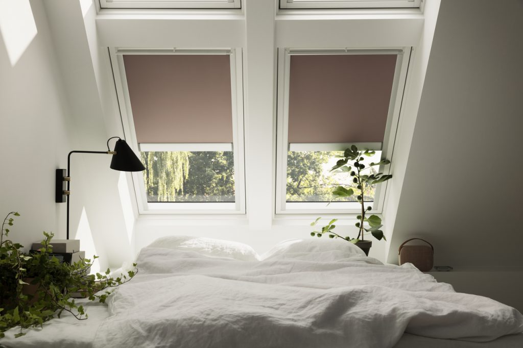 Velux Duo Blinds: A blackout blind and pleated blind combined in one unit. Switch between soft diffused light during the day and blackout at night. Ideal for rooms with changing needs.